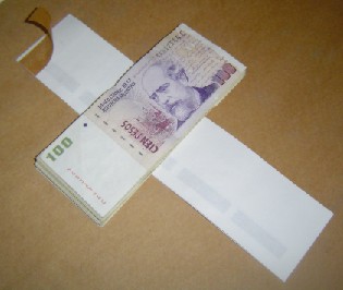 El formato de las fajas autoadhesivas para billetes de utilización bancaria es de 6x25cm (consulte por otros formatos), en papel Obra 1º calidad en 70 y 80grs.